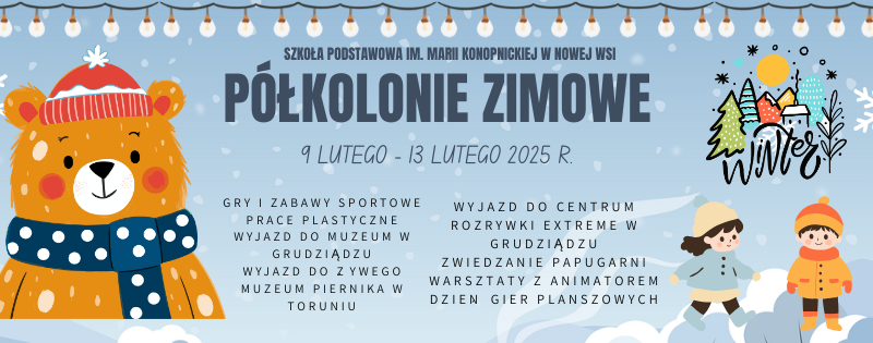 Read MoreZapraszamy do zapisów na półkolonie zimowe w naszej szkole. Półkolonie odbędą się w dniach od 9 lutego do 13 lutego