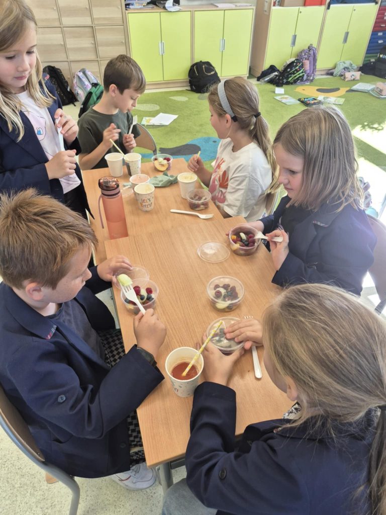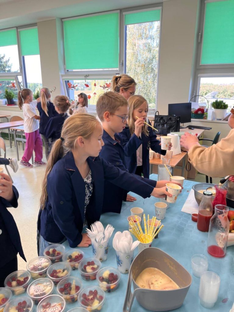 Rodzice uczniów klasy 2A zorganizowali szkolne przyjęcie witaminowe. Celem akcji było propagowanie wśród dzieci zdrowego odżywiania. Zajęcia obok formy praktycznej (degustacja zdrowych przekąsek) miały również formę teoretyczną, którą stanowiły warzywne karty pracy, wykonane wraz z wychowawcą.