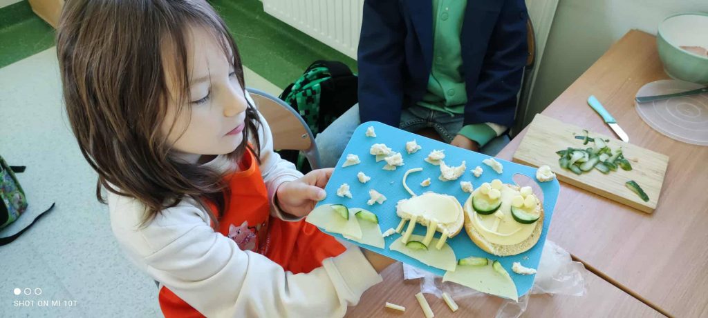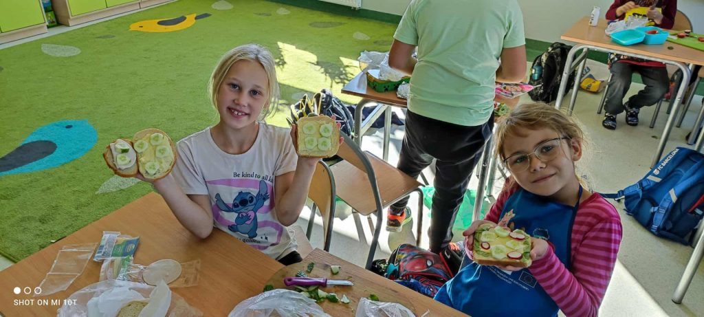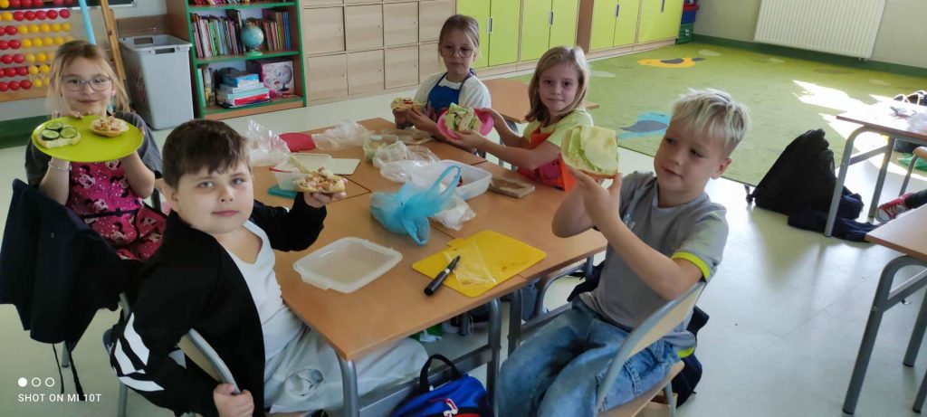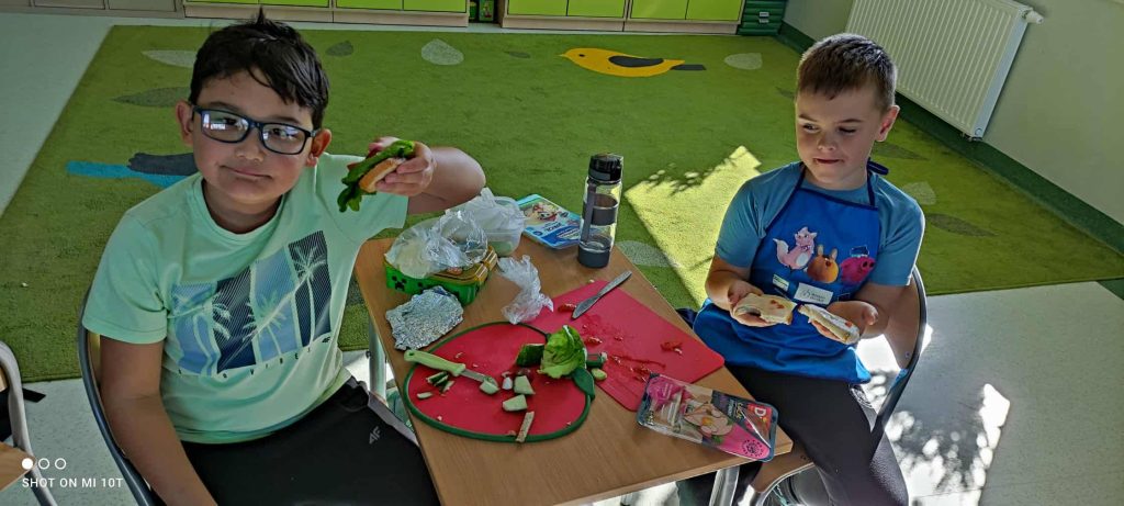 Uczniowie klasy 2B realizowali zajęcia z zakresu zdrowego odżywiania w formie kanapkowej. Zadaniem uczniów było przygotowanie autorskich kanapek, które bogato okrasili warzywami. Zajęcia wypadły wprost przepysznie!