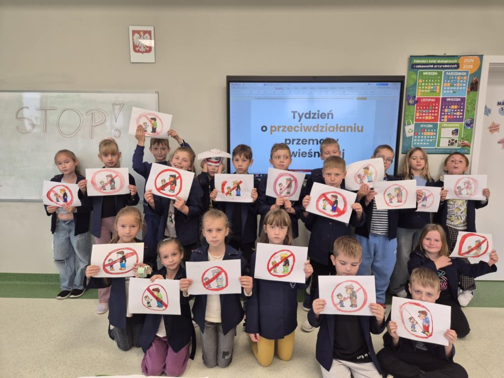 Uczniowie naszej szkoły aktywnie obchodzili Tydzień Przeciwdziałania Przemocy Rówieśniczej, zainicjowany przez Ministerstwo Edukacji Narodowej. Zorganizowano różnorodne zajęcia, podczas których dzieci i młodzież miały szansę poznać skuteczne metody rozwiązywania konfliktów w grupie rówieśniczej oraz wykonywały zadania mające na celu uzyskanie świadomości, jak rozpoznać zagrożenia i jak reagować na sytuacje, gdy dzieje się coś złego.