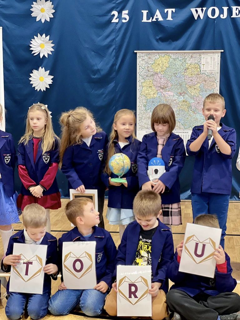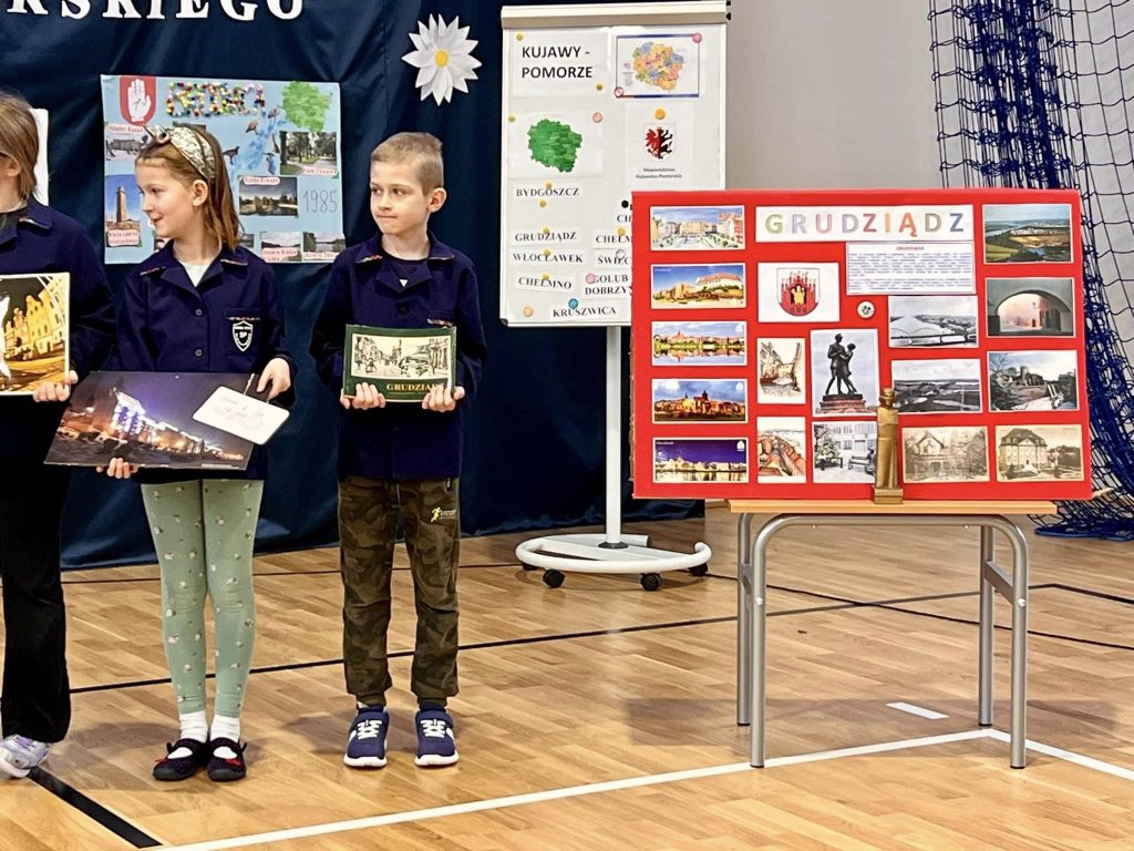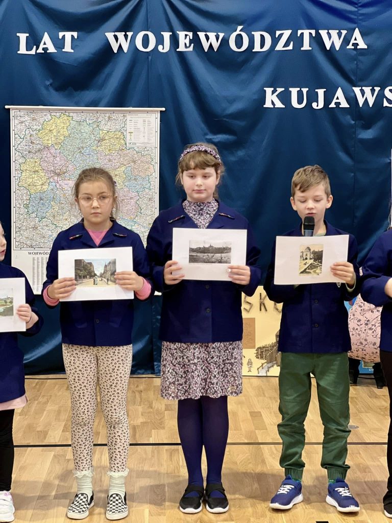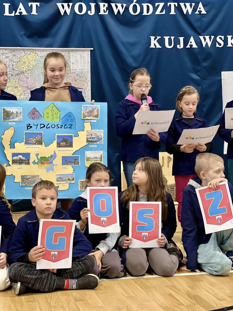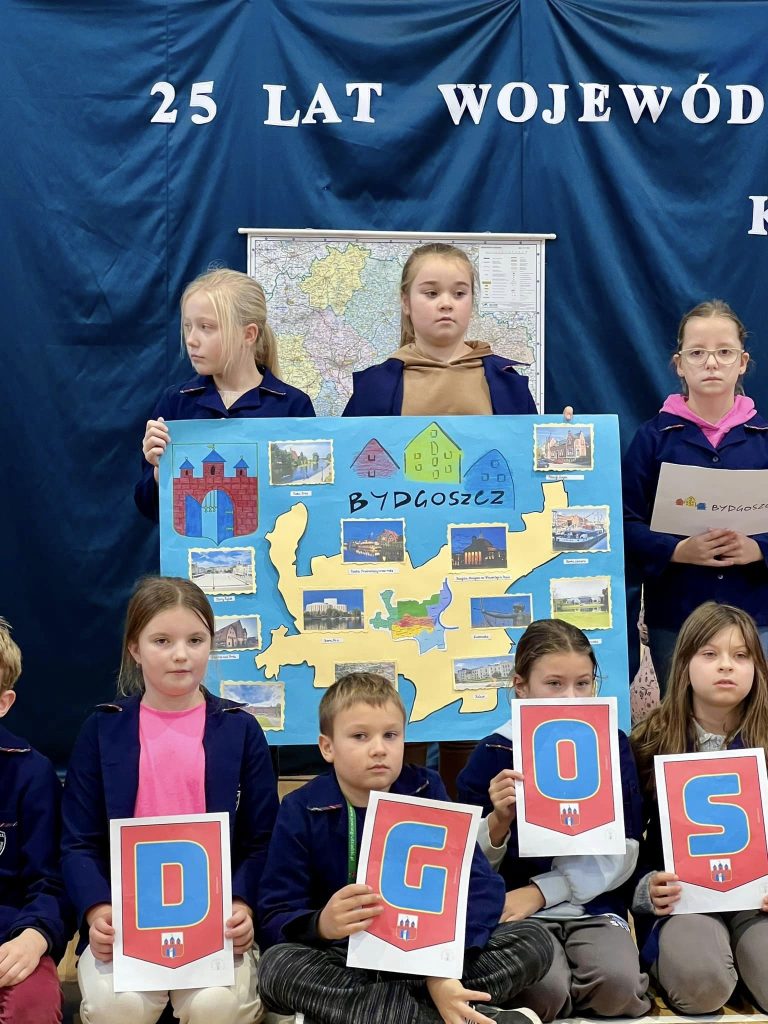 Nasza szkoła również włączyła się w obchody tego jubileuszu. W piątek dzieci z klas młodszych oraz oddziału przedszkolnego przygotowały prezentacje na temat wybranych miast w naszym województwie. Uczniowie poznali najważniejsze fakty i ciekawostki o: Toruniu, Bydgoszczy, Chełmnie, Inowrocławiu, Brodnicy, Biskupinie oraz Grudziądzu. W następnym tygodniu kolejne miasta zaprezentują uczniowie klas starszych.