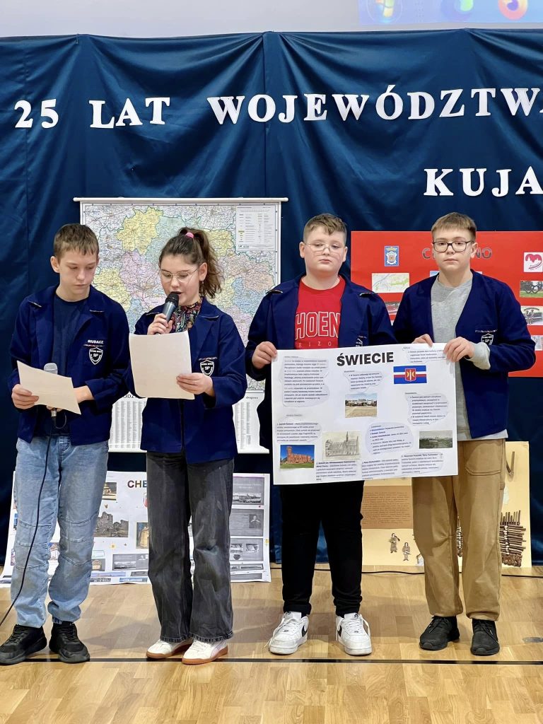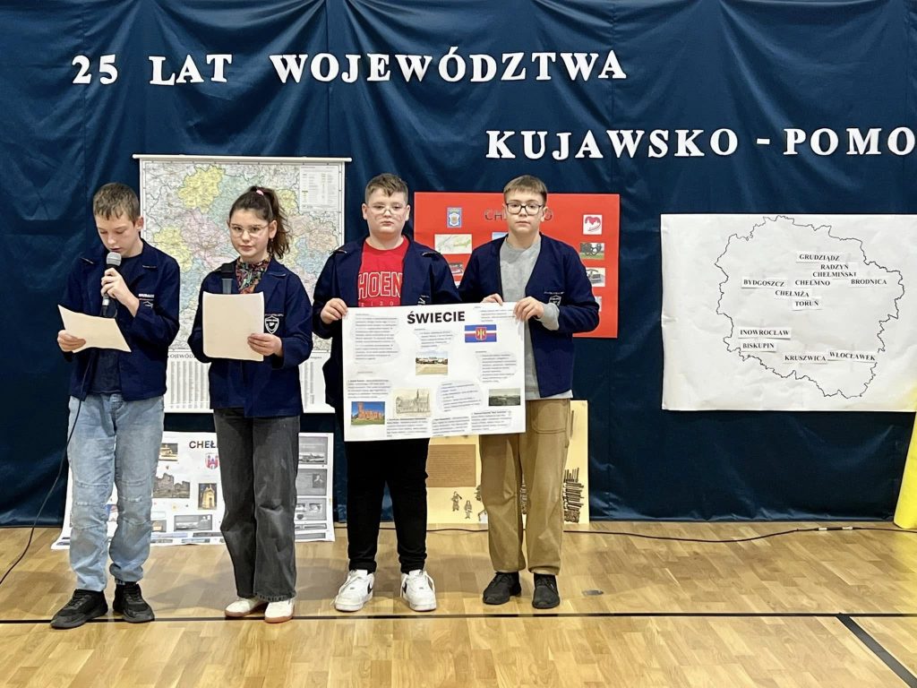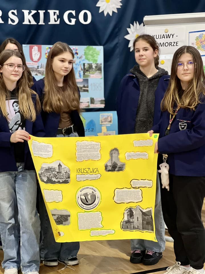 Młodzież z klas starszych również pokazywała swoje prezentacje na temat wybranych miast w naszym województwie. Uczniowie poznali najważniejsze fakty i ciekawostki o: Kruszwicy, Ciechocinku, Włocławku, Świeciu, Radzyniu Chełmińskim oraz Chełmży. W ubiegłym tygodniu swoje prace prezentowali uczniowie klas młodszych.